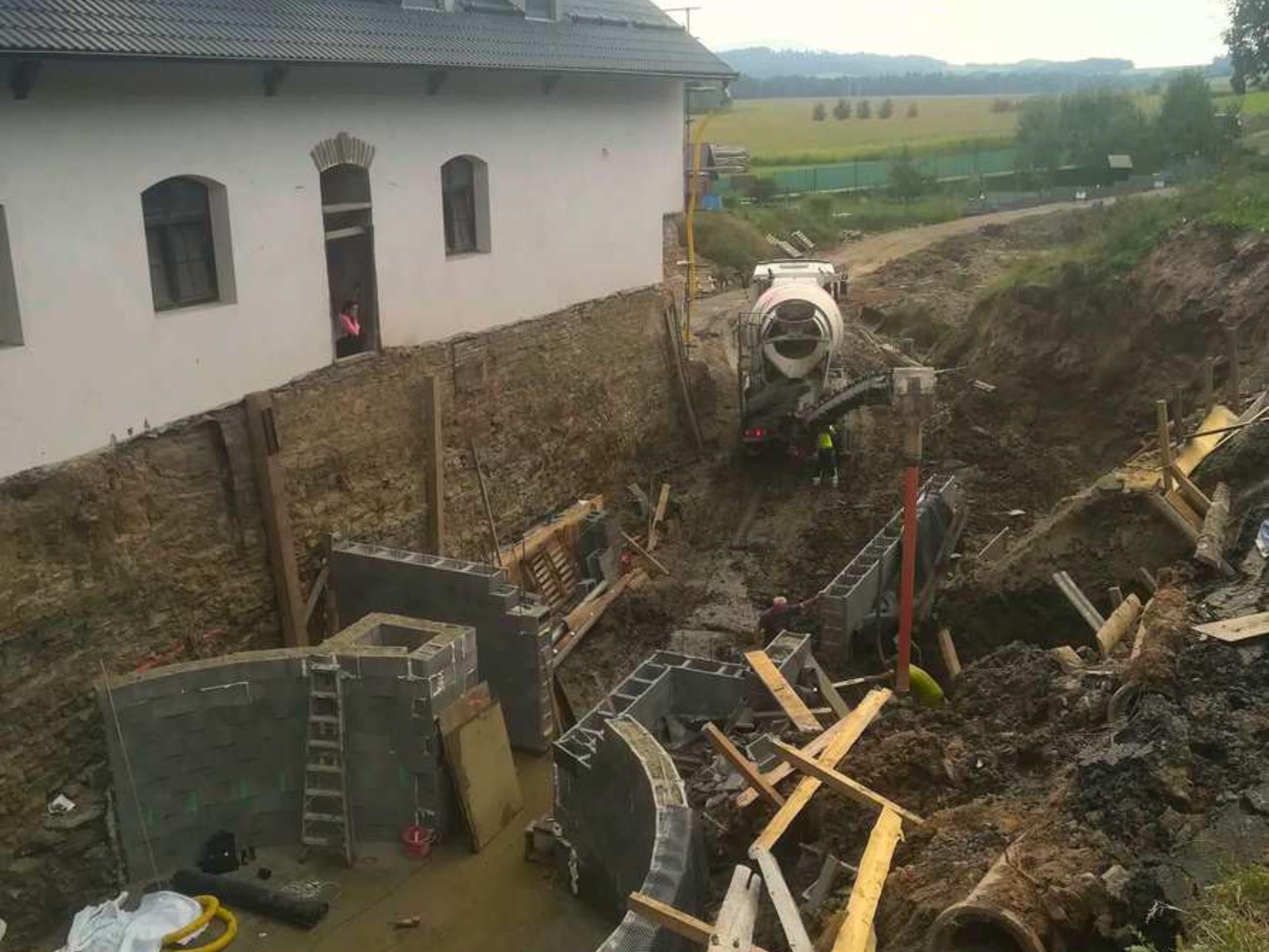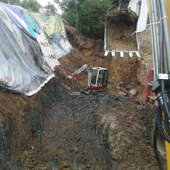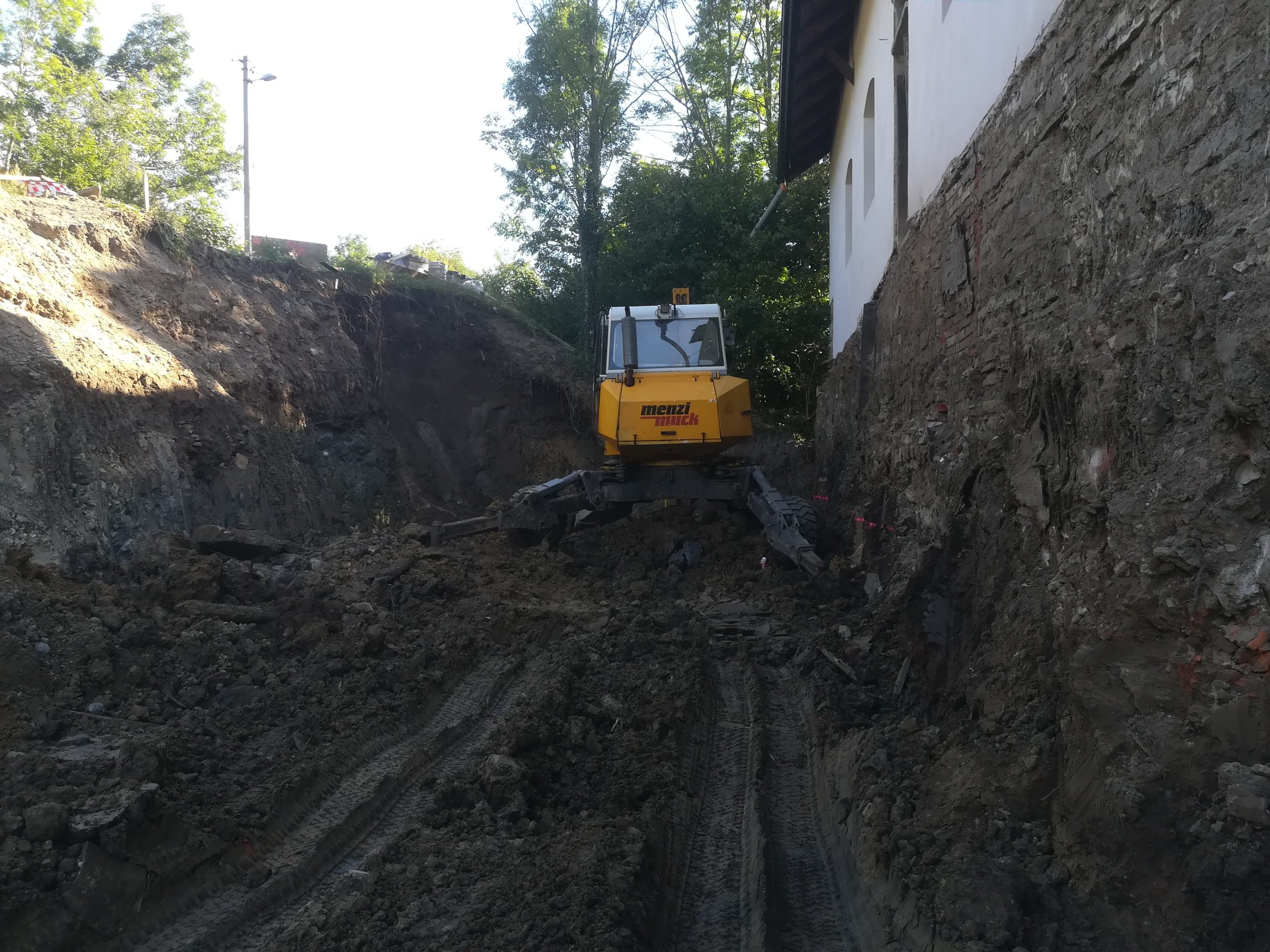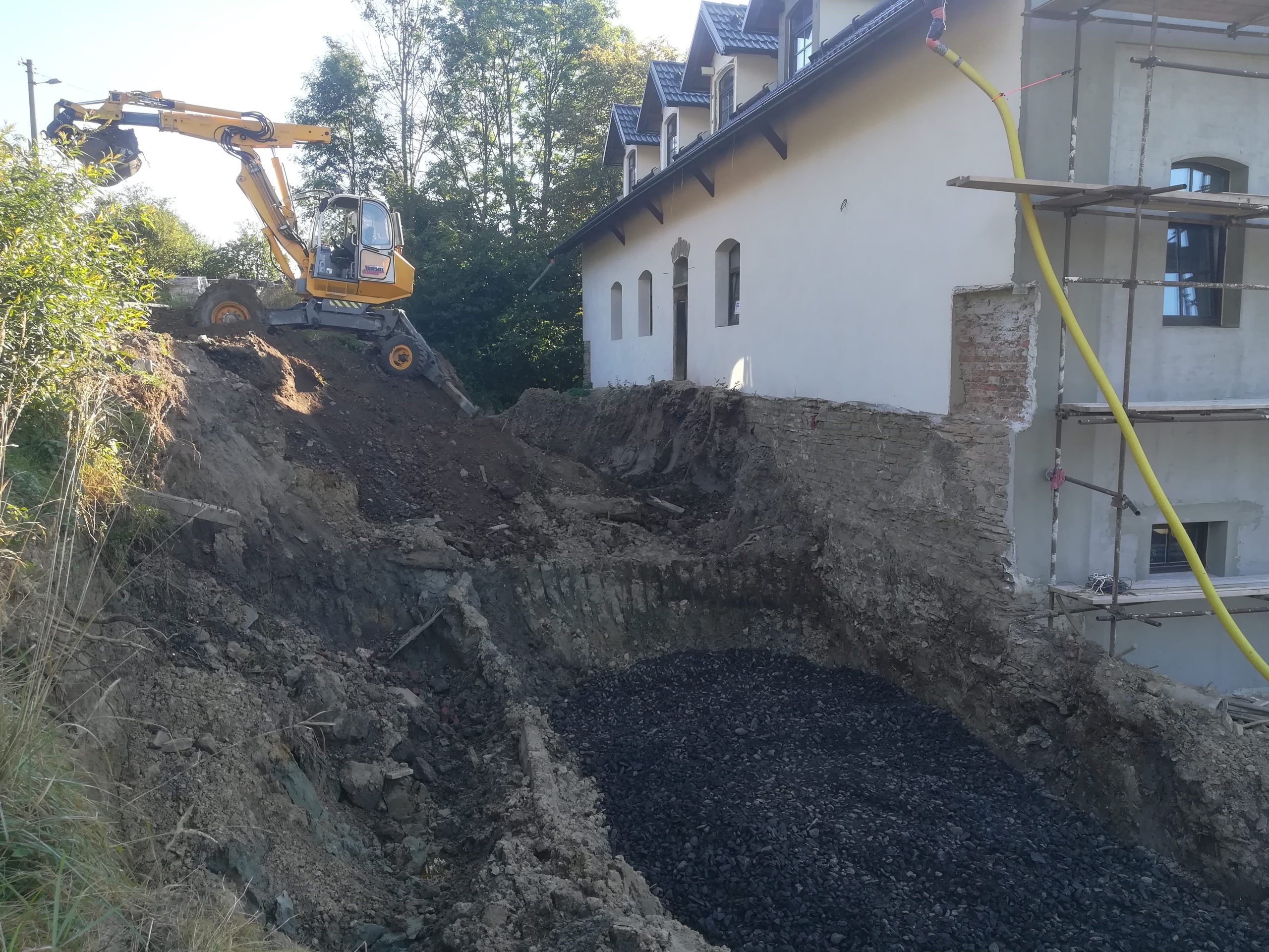 Kompletní zemní a výkopové práce pro výstavbu vinného sklepa. Práce zahrnovaly precizní skrývku ornice, výkopy základů, zemní úpravy terénu a přípravu podkladových vrstev pro budoucí stavební práce. Připravili jsme stavební plochu přesně dle projektové dokumentace, čímž byl položen stabilní základ pro úspěšnou výstavbu jedinečného objektu vinného sklepa.
